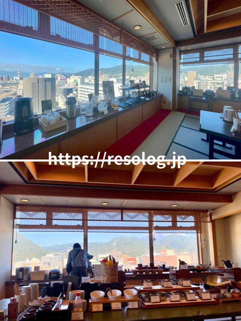 ホテル12階の「あさま」が朝食会場です。バイキング形式です。7:50頃、伺いました。