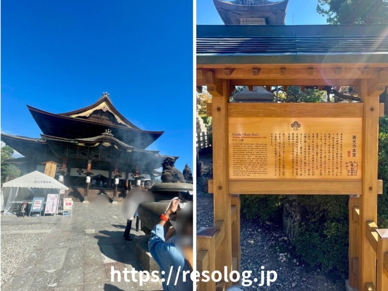 善光寺本堂横と正面にて。