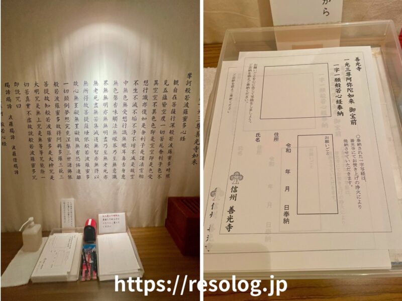 善光寺本堂の左側に仮設のような建物があり、そちらで御朱印を押していただきました。(工事中の場所が多かったので、場所が変わるかもしれませんので最新情報をご確認くださいね。)